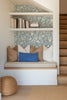 Material: Papel de parede non woven 80% celulose 20% fibras sintéticas (para dar estabilidade e a limpeza mais fácil). Sua base é offwhite e tem leve textura, conferindo um aspecto mais aconchegante.