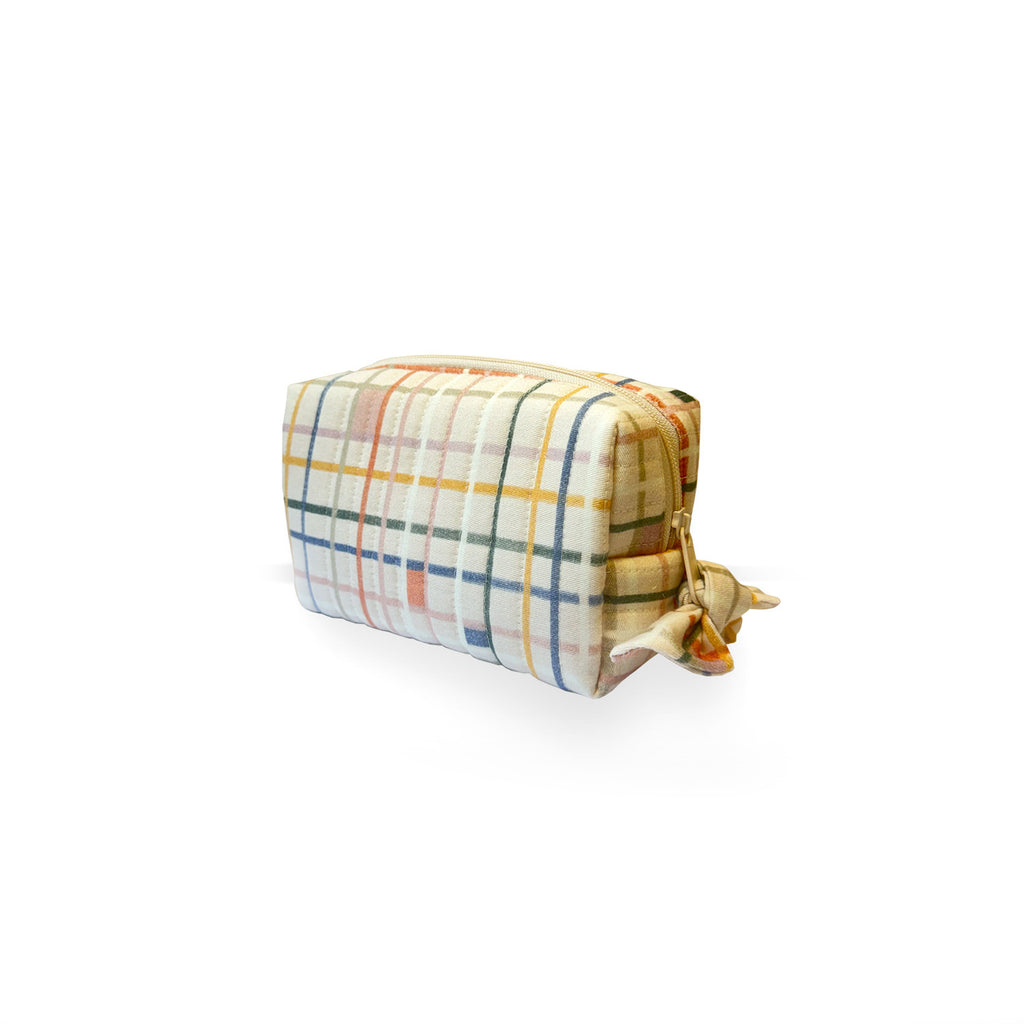 Necessaire com exterior feito com estampa de xadrez e