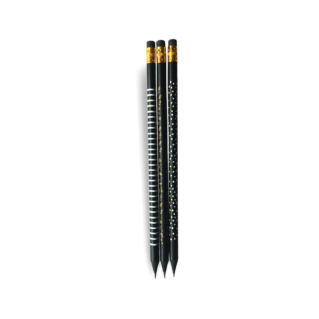 Kit com 3 lápis HB estampados