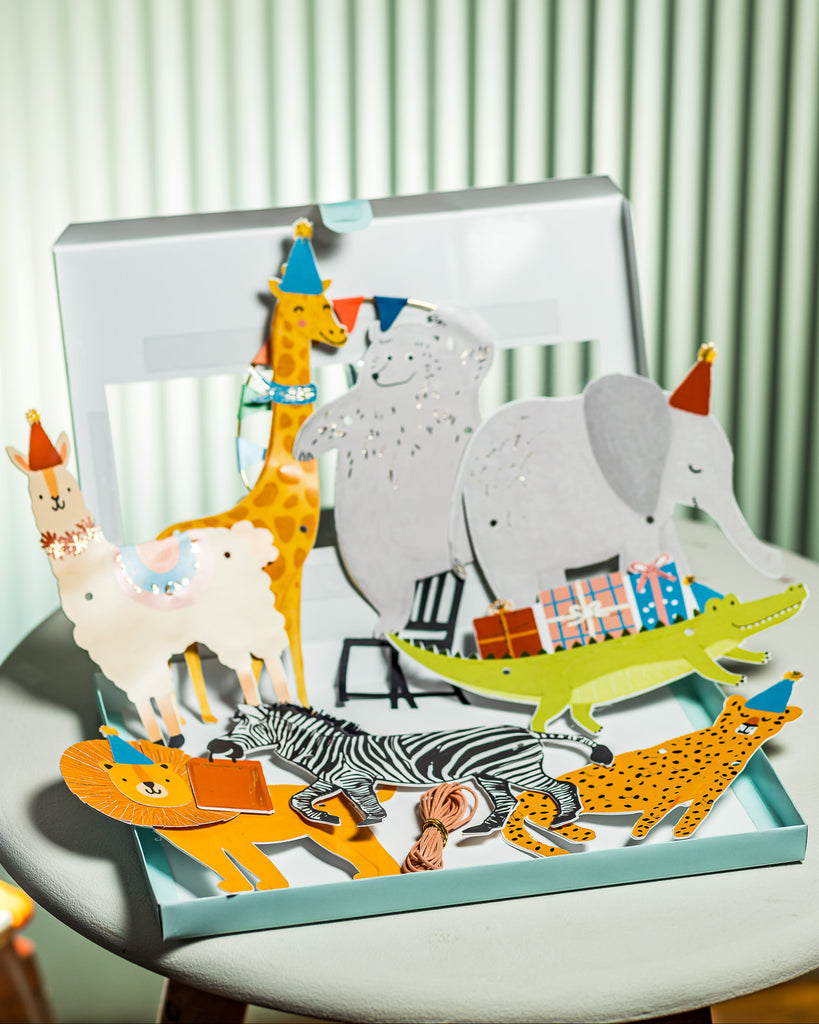 Estúdio Papel8 animais em diferentes desenhos + 2m de barbante colorido.